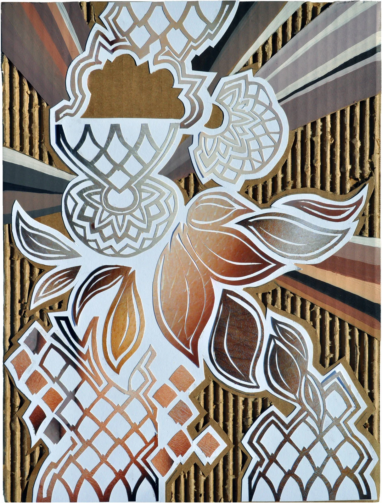 Paper, photographs, and acrylic on corrugated cardboard