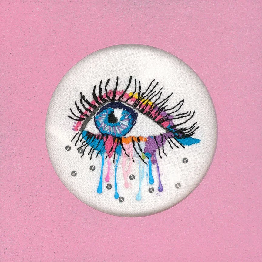 Keya Aurora ’23, Episcopal High School Beginning Mixed Media Eye See You 2021 Cotton embroidered with cotton thread, sequins, paint and hot glue 7.25” x 7.25” x 0.625”